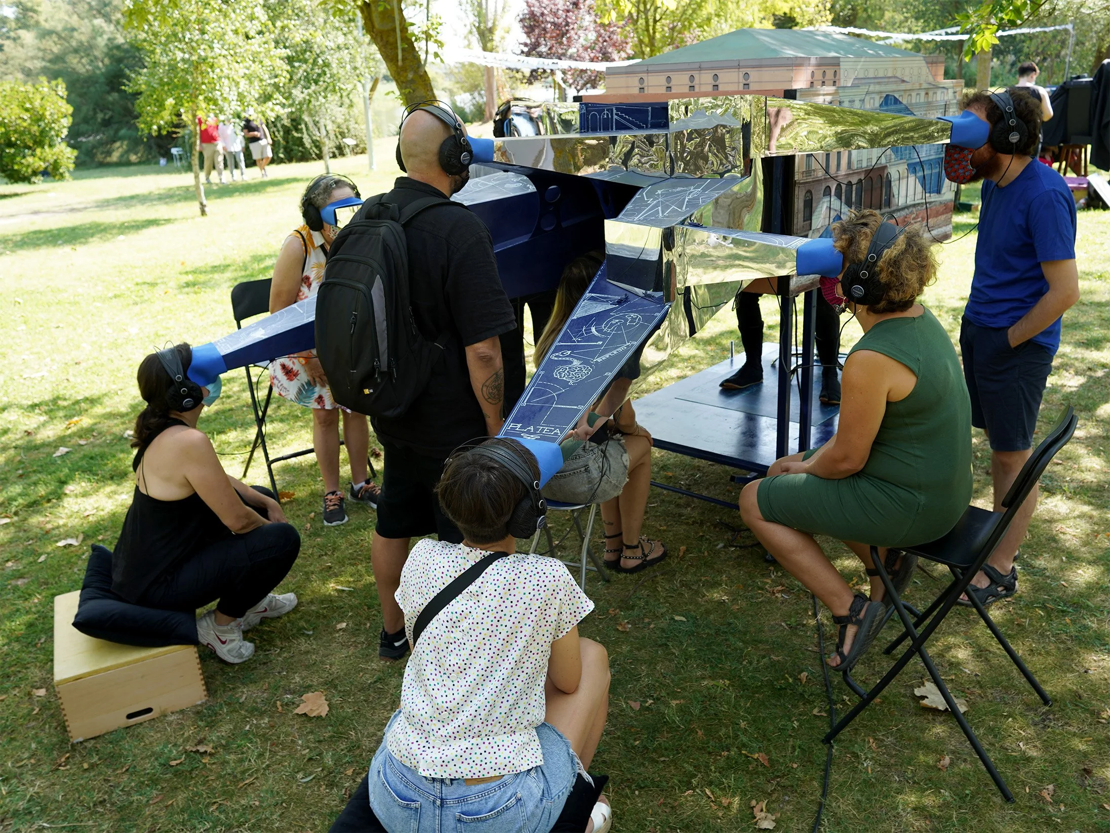 “Un teatro a la italiana (Teatro Principal de Burgos a escala 1:35) donde se representan piezas cortas de títulos y hologramas. Un dispositivo escénico, inclusivo, diferente. Se accede a través de auriculares, tubos y espejos. Una visión del escenario desde cada visor, tal y como ocurre en los teatros a la italiana... una nueva forma de espectáculo del siglo XXI”.